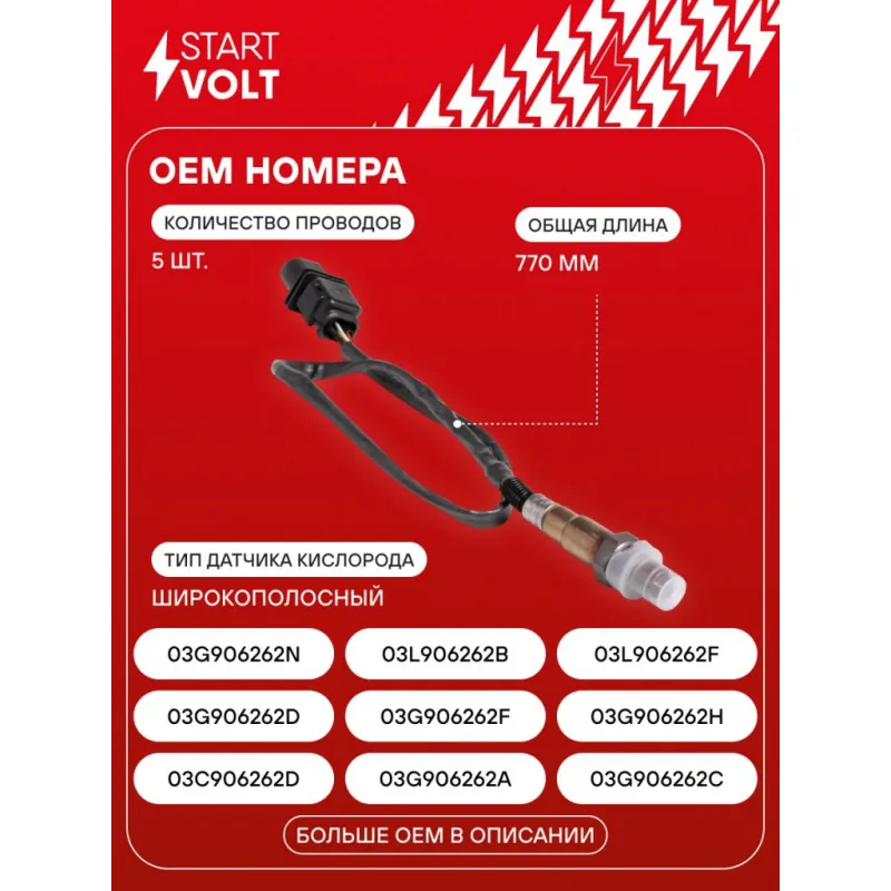 Датчик кислорода для автомобилей VAG Octavia (96-)/Touareg (02-)/A6 (04-) Характеристики: Артикул: VS-OS 1820 OEM номера: 03C906262D, 03G906262A, 03G906262C, 03G906262D, 03G906262F, 03G906262H, 03G906262N, 03L906262B, 03L906262F, 03L906262J, 03L906262K, 03L906262P, 03L906262S, 045 906 262, 057906262D, 057906262F, 059 906 262, 059906262B, 059906262F, 059906262H, 059906262J, 059906262K, 070906262B, 1K0998262AD, 4H0906262C, 45906262, 8R0906262, 95860617220, 958906262L, A9061531228, A9065420218, HVW9061531228, HVW9065420218, 9061531228, 9065420218, 0 281 004 148 Количество на автомобиль: 1 Тип датчика кислорода: Широкополосный Общая длина, мм: 770 Количество проводов: 5 Подходит для авто: Volkswagen Touareg (02-), Tiguan (08-) Audi A3 (03-), A8 (03-), A8 (03-), Q7 (06-), A6 C6 (04-), A3 (03-) Skoda Octavia (96-) Seat Leon (99-), Toledo (98-) Для проверки применяемости отправьте VIN автомобиля через вкладку "Есть вопросы о товаре?" Комплектация: Датчик кислорода - 1 шт Паспорт изделия/гарантийный талон - 1 шт Гарантия: от 1 года.