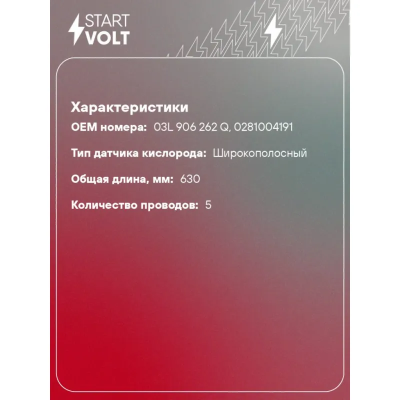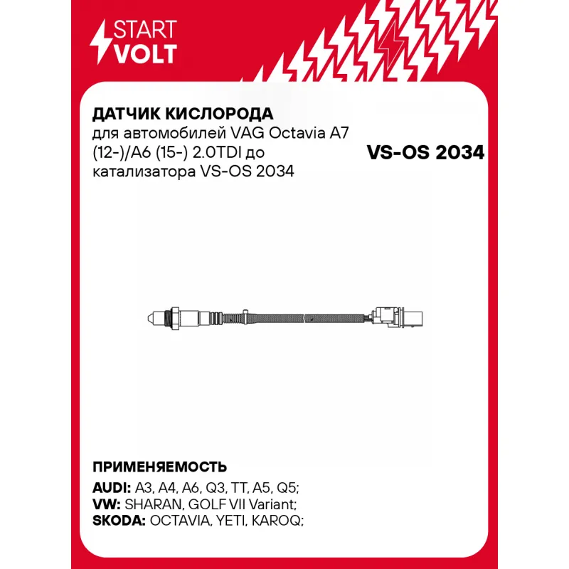 Датчик кислорода для автомобилей VAG Octavia A7 (12-)/A6 (15-) 2.0TDI до катализатора Характеристики: Артикул: VS-OS 2034 OEM номера: 03L 906 262 Q, 0281004191 Общая длина, мм: 630 Количество проводов: 5 Тип датчика кислорода: Широкополосный Количество на автомобиль: 1 Комплектация: Паспорт изделия/гарантийный талон - 1 шт Кислородный датчик - 1 шт Гарантия: от 1 года.