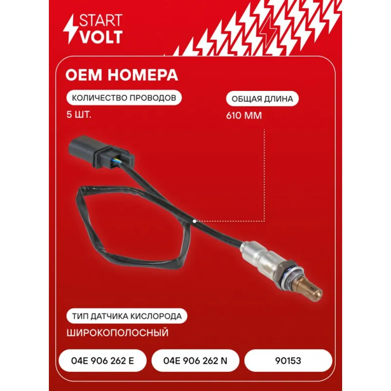 Датчик кислорода для автомобилей VAG Octavia A7 (13-)/Golf VII (12-) 1.4TSI до катализатора Характеристики: Артикул: VS-OS 1939 OEM номера: 04E 906 262 E, 04E 906 262 N, 90153 Общая длина, мм: 610 Количество проводов: 5 Тип датчика кислорода: Широкополосный Количество на автомобиль: 1 Подходит для авто: Audi A3 (12-) Volkswagen Golf VII (12-) Skoda Octavia A7 (13-) Seat Leon (12-) Для проверки применяемости отправьте VIN автомобиля через вкладку "Есть вопросы о товаре?" Комплектация: Паспорт изделия/гарантийный талон - 1 шт Кислородный датчик - 1 шт Гарантия: от 1 года.