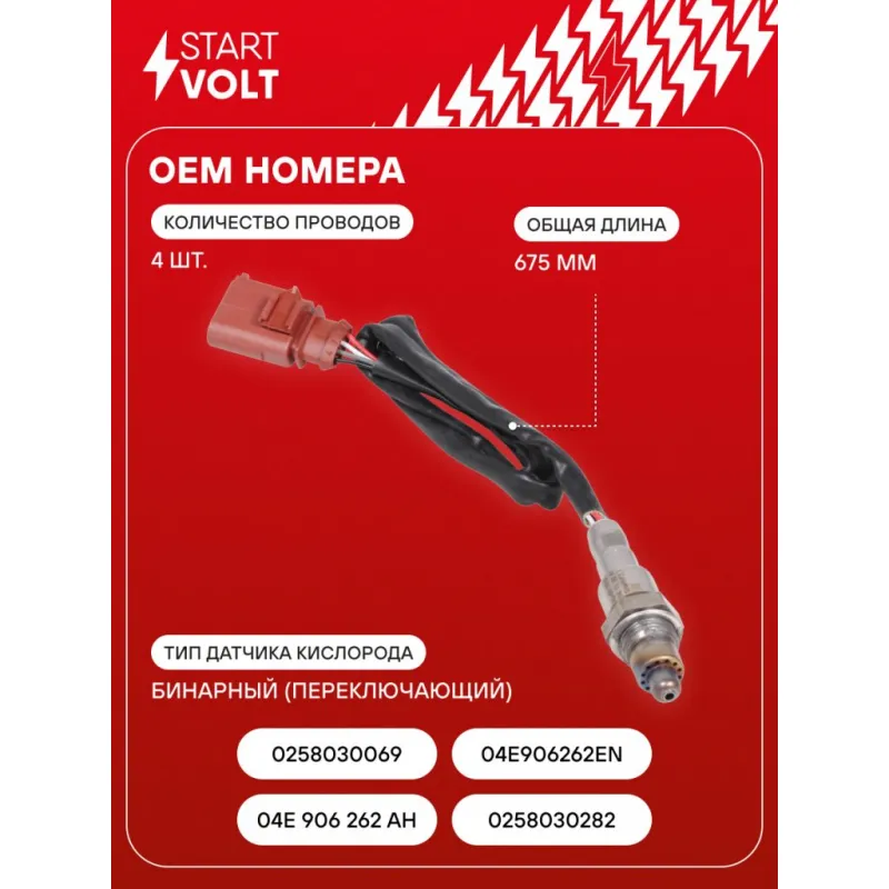 Датчик кислорода для автомобилей VAG Octavia A7 (13-)/Golf VII (13-) 1.6i 110л.с. до катализатора Характеристики: Артикул: VS-OS 1816 OEM номера: 04E 906 262 AH, 0258030282, 0258030069, 04E906262EN Количество на автомобиль: 1 Подходящий разъем AIRLINE:: AECC043, AECC288 Тип датчика кислорода: Бинарный (переключающий) Общая длина, мм: 675 Количество проводов: 4 Подходит для авто: Skoda Yeti (09-), Octavia A7 (13-) Volkswagen Golf VII (12-) Для проверки применяемости отправьте VIN автомобиля через вкладку "Есть вопросы о товаре?" Комплектация: Датчик кислорода - 1 шт Паспорт изделия/гарантийный талон - 1 шт Гарантия: от 1 года.