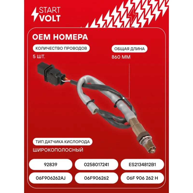 Датчик кислорода для автомобилей VAG Passat (05-)/Octavia (04-) 2.0i до катализатора правый Характеристики: Артикул: VS-OS 1703 OEM номера: 06F906262AJ, 06F906262, 06F 906 262 H, 92839, 0258017241, ES2134812B1 Количество на автомобиль: 1 Тип датчика кислорода: Широкополосный Общая длина, мм: 860 Количество проводов: 5 Подходит для авто: Skoda Octavia A5 (04-) Volkswagen Golf V (03-), Jetta (05-), Passat B6 (05-), Touran (03-) Audi A3 (03-) Для проверки применяемости отправьте VIN автомобиля через вкладку "Есть вопросы о товаре?" Комплектация: Датчик кислорода - 1 шт Паспорт изделия/гарантийный талон - 1 шт Гарантия: от 1 года.