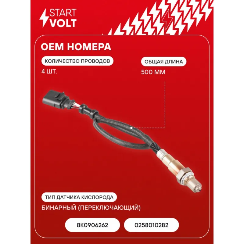 Датчик кислорода для автомобилей VAG Q5 (08-) 2.0TFSI/A4 (07-)/A5 (07-) 1.8TFSI после катализатора Характеристики: Артикул: VS-OS 2105 OEM номера: 8K0906262, 0258010282 Общая длина, мм: 500 Количество проводов: 4 Тип датчика кислорода: Бинарный (переключающий) Количество на автомобиль: 1 Подходит для авто: Audi A4 B8 (07-), A5 (07-), Q5 (08-) Для проверки применяемости отправьте VIN автомобиля через вкладку "Есть вопросы о товаре?" Комплектация: Датчик кислорода - 1 шт Паспорт изделия/гарантийный талон - 1 шт Гарантия: от 1 года.