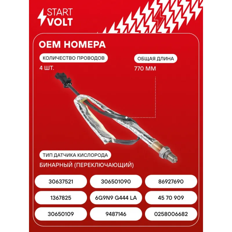 Датчик кислорода для автомобилей Volvo XC90 (02-)/XC70 (00-) с 2004 2.5T после катализатора Характеристики: Артикул: VS-OS 1022 OEM номера: 30650109, 9487146, 0258006682, 1367825, 6G9N9 G444 LA, 45 70 909, 30637521, 306501090, 86927690 Общая длина, мм: 770 Количество проводов: 4 Тип датчика кислорода: Бинарный (переключающий) Количество на автомобиль: 1 Подходит для авто: Volvo XC90 (02-), S60 (00-), XC70 (00-) Ford Kuga (08-) Для проверки применяемости отправьте VIN автомобиля через вкладку "Есть вопросы о товаре?" Комплектация: Датчик кислорода - 1 шт Паспорт изделия/гарантийный талон - 1 шт Гарантия: от 1 года.