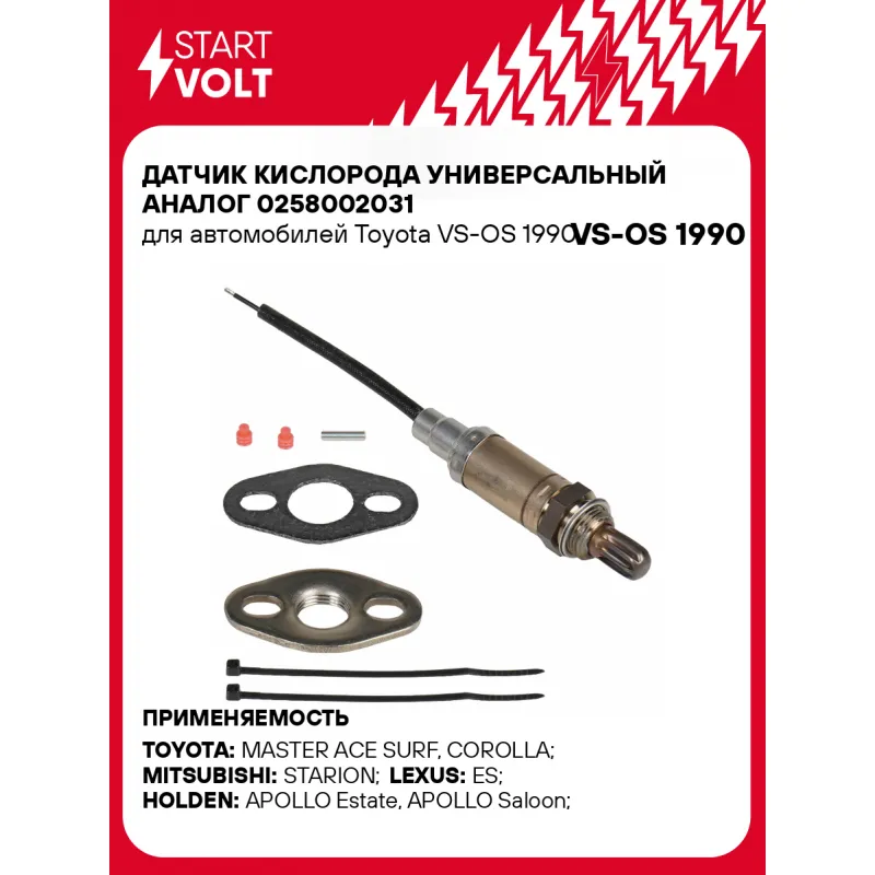 Датчик кислорода универсальный аналог 0258002031 для автомобилей Toyota Характеристики: Артикул: VS-OS 1990 OEM номера: 94 845 519, 94 850 731, 8946587103000, 8946587601000, 8946587704000, 18213-80400, 89425 14010, 89425 19025, 89425 19045, 89425 19046, 89425 19145, 89425 29045, 89425 69035, 89425 69045, 89425-19165, 89425-29165, 89465 02010, 89465 12030, 89465 12140, 89465 12170, 89465 14060, 89465 14090, 89465 17030, 89465 17080, 89465 19055, 89465 19132, 89465 19135, 89465 19136, 89465 19155, 8946519225, 8946519255, 8946519256, 8946519265, 8946519275, 8946519315, 8946519316, 8946519435, 8946519475, 8946519585, 8946520020, 8946520030, 8946522030, 8946522040, 8946522110, 8946528020, 8946528145, 8946529045, 8946529055, 8946529075, 8946529076, 8946529165, 8946529166, 8946529195, 8946529315, 8946529316, 8946529395, 8946539145, 8946539146, 8946539185, 8946539205, 8946539405, 8946539395, 8946591465, 89465-12120, 89465-19045, 8946520070, 8946520210, 8946529145, 8946532010, 8946532050, 8946532080, 8946539085, 0258002031 Количество на автомобиль: 1 Тип датчика кислорода: Бинарный (переключающий) Общая длина, мм: 180 Количество проводов: 1 Комплектация: Втулка металлическая - 1 шт Паспорт изделия/гарантийный талон - 1 шт Уплотнительная прокладка - 1 шт Термоусадка - 1 шт Втулка резиновая - 2 шт Металлический фланец - 1 шт Датчик кислорода - 1 шт Инструкция по установке - 1 шт Хомут пластиковый - 2 шт Гарантия: от 1 года.