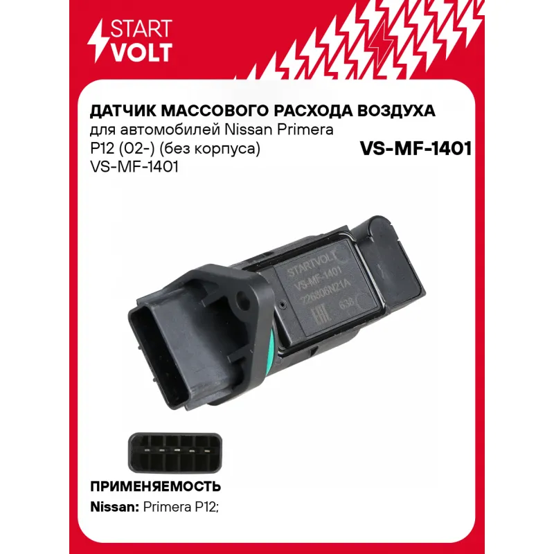 Датчик массового расхода воздуха для автомобилей Nissan Primera P12 (02-) (без корпуса) Характеристики: Артикул: VS-MF-1401 OEM номера: 22680-6N21A, 22680-6N211, 22680-6N210, 22680-7J500 Количество контактов: 5 Тип корпуса: Без корпуса Количество на автомобиль: 1 Подходящий разъем AIRLINE:: AECC048 Подходит для авто: Nissan Primera P12 (02-) Для проверки применяемости отправьте VIN автомобиля через вкладку "Есть вопросы о товаре?" Комплектация: Датчик массового расхода воздуха - 1 шт Паспорт изделия/гарантийный талон - 1 шт Гарантия: от 1 года.