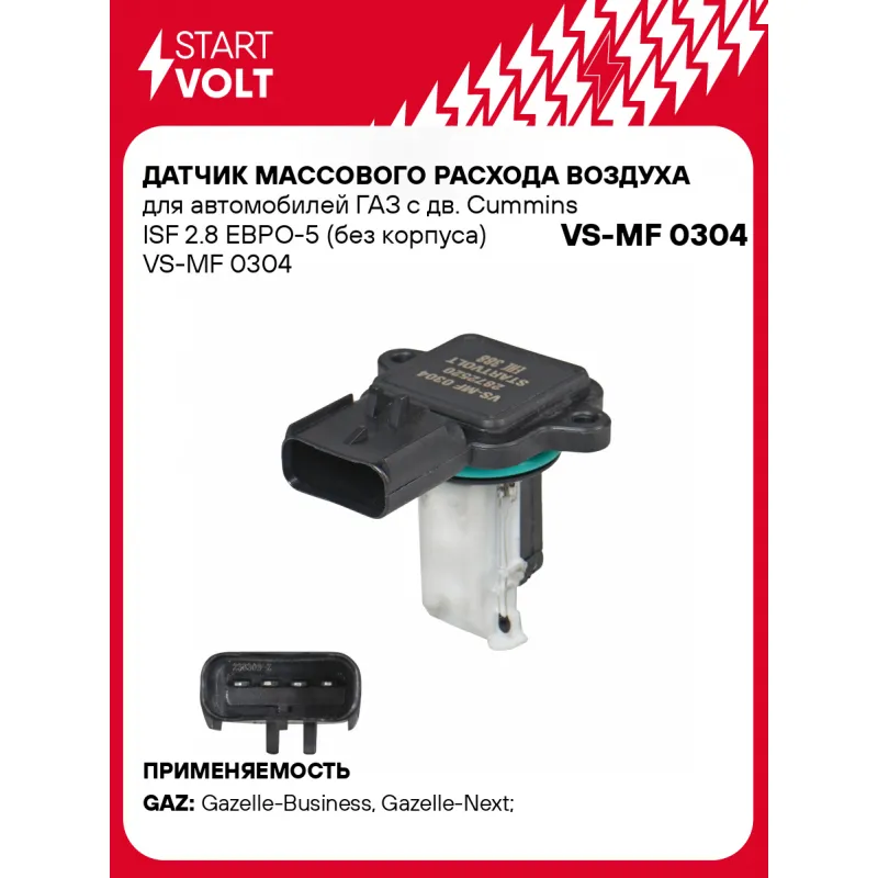 Датчик массового расхода воздуха для автомобилей ГАЗ с дв. Cummins ISF 2.8 ЕВРО-5 (без корпуса) Характеристики: Артикул: VS-MF 0304 OEM номера: 2872520, 5WK97522 Количество контактов: 5 Тип корпуса: Без корпуса Количество на автомобиль: 1 Подходит для авто: ГАЗ Gazelle-Business, Gazelle-Next (13-) Для проверки применяемости отправьте VIN автомобиля через вкладку "Есть вопросы о товаре?" Комплектация: Датчик массового расхода воздуха - 1 шт Паспорт изделия/гарантийный талон - 1 шт Гарантия: от 1 года.
