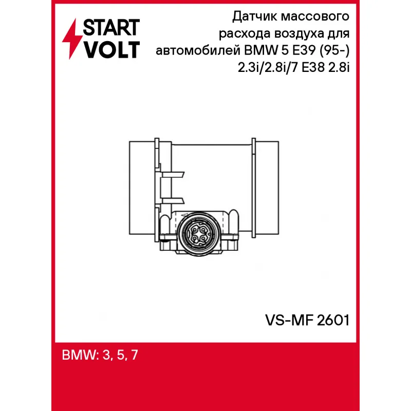 Датчик массового расхода воздуха для автомобилей BMW 5 E39 (95-) 2.3i/2.8i/7 E38 (95-) 2.8i Характеристики: Артикул: VS-MF 2601 OEM номера: 13621703275, 13621703650, 1703650, 1703275 Количество контактов: 4 Тип корпуса: С корпусом Впускной диаметр, мм: 80,5 Выпускной диаметр, мм: 80,5 Количество на автомобиль: 1 Комплектация: ... Читать полностью →