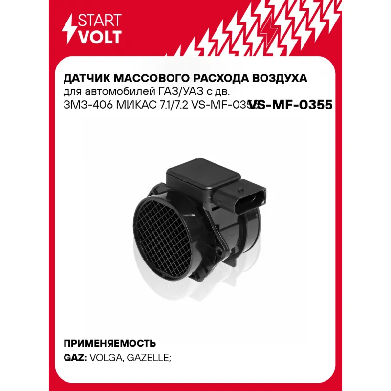Датчик массового расхода воздуха для автомобилей ГАЗ/УАЗ с дв. ЗМЗ-406 МИКАС 7.1/7.2 Характеристики: Артикул: VS-MF-0355 OEM номера: 20.3855-407282.000, 20.3855, 293 3763000-04, 31602 3877012, 31602 3877014, 5WK9635, 20.3855000, 20.3855000 407282.001 Количество контактов: 5 Тип корпуса: С корпусом Впускной диаметр, мм: 70 Выпускной диаметр, мм: 70,4 Количество на автомобиль: 1 Комплектация: Датчик массового расхода воздуха - 1 шт Паспорт изделия/гарантийный талон - 1 шт Гарантия: от 1 года.