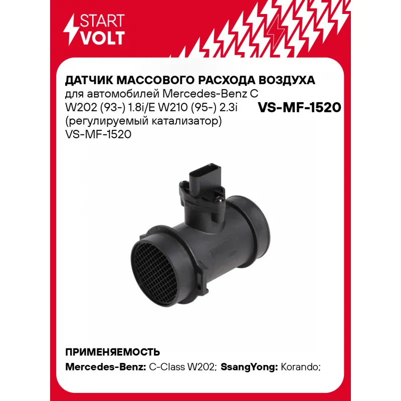 Датчик массового расхода воздуха для автомобилей Mercedes-Benz C W202 (93-) 1.8i/E W210 (95-) 2.3i (регулируемый катализатор) Характеристики: Артикул: VS-MF-1520 OEM номера: 0000940948, A0000940948, 0280217114, 0280217115 Количество контактов: 5 Тип корпуса: С корпусом Впускной диаметр, мм: 70 Выпускной диаметр, мм: 69 Количество на автомобиль: 1 Подходит для авто: Mercedes-Benz C-Class W202 (93-), A-Class W168 (97-), C-Class W203 (00-), C-Class W204 (07-), E-Class W210 (95-), M-Class I (W163) (97-), Vito (W638) (96-), Sprinter Classic (13-) SsangYong Korando (95-) Для проверки применяемости отправьте VIN автомобиля через вкладку "Есть вопросы о товаре?" Комплектация: Датчик массового расхода воздуха - 1 шт Паспорт изделия/гарантийный талон - 1 шт Гарантия: от 1 года.
