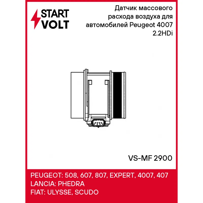 Датчик массового расхода воздуха для автомобилей Peugeot 4007 (07-) 2.2HDi Характеристики: Артикул: VS-MF 2900 OEM номера: 1232944, 1303898, 1920 HH, 9645948980, 3M5A 12B579 AB, 8670093 Количество контактов: 4 Тип корпуса: С корпусом Впускной диаметр, мм: 80,4 Выпускной диаметр, мм: 81 Количество на автомобиль: 1 Комплектация:... Читать полностью →