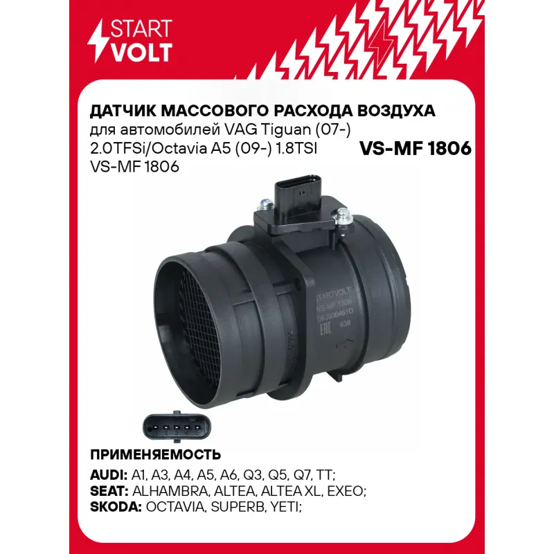 Датчик массового расхода воздуха для автомобилей VAG Tiguan (07-) 2.0TFSi/Octavia A5 (09-) 1.8TSI Характеристики: Артикул: VS-MF 1806 OEM номера: 06J906461D, 2505079 Количество контактов: 5 Тип корпуса: с корпусом Впускной диаметр, мм: 80.5 Выпускной диаметр, мм: 80.5 Количество на автомобиль: 1 Комплектация: Датчик массового... Читать полностью →