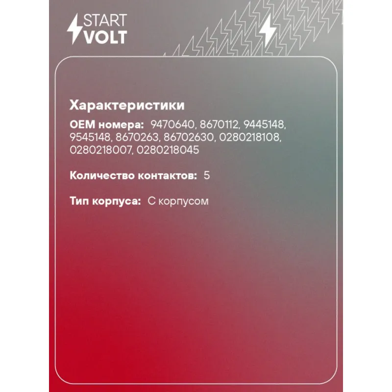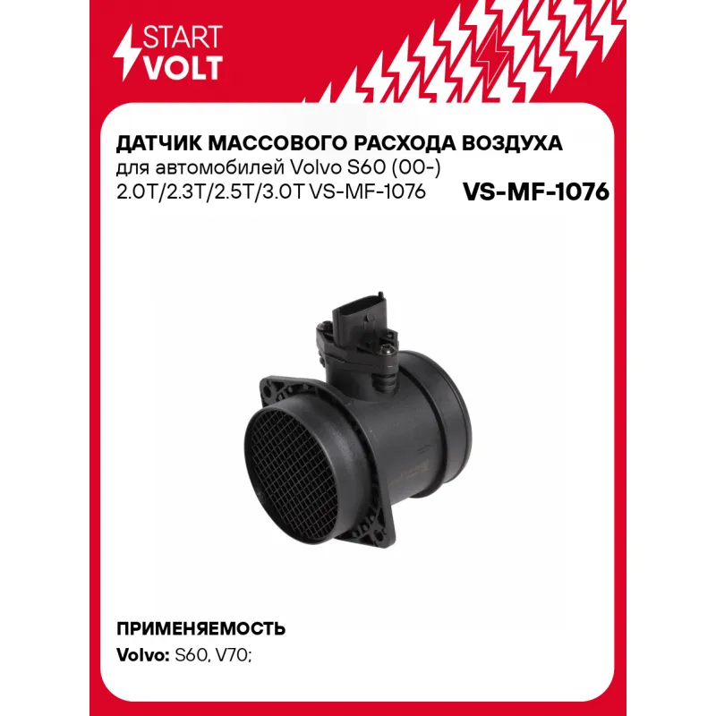 Датчик массового расхода воздуха для автомобилей Volvo S60 (00-) 2.0T/2.3T/2.5T/3.0T Характеристики: Артикул: VS-MF-1076 OEM номера: 9470640, 8670112, 9445148, 9545148, 8670263, 86702630, 0280218108, 0280218007, 0280218045 Количество контактов: 5 Тип корпуса: С корпусом Впускной диаметр, мм: 80 Выпускной диаметр, мм: 81 Количество на автомобиль: 1 Подходит для авто: Volvo S60 (00-), V70 (00-) Для проверки применяемости отправьте VIN автомобиля через вкладку "Есть вопросы о товаре?" Комплектация: Датчик массового расхода воздуха - 1 шт Паспорт изделия/гарантийный талон - 1 шт Гарантия: от 1 года.