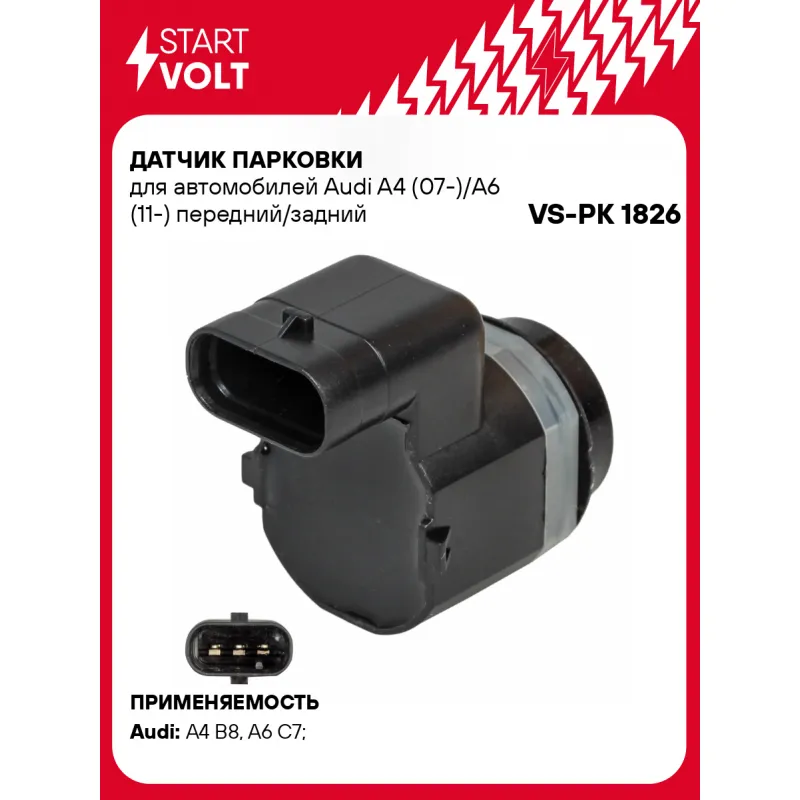Датчик парковки для автомобилей Audi A4 (07-)/A6 (11-) передний/задний Характеристики: Артикул: VS-PK 1826 OEM номера: 1S0919275D, 3TD 919 275, 420 919 275, 4H0 919 275 A Количество контактов: 3 Сторона установки: Спереди/Сзади Форма: Согнутый Подходит для авто: Audi A4 B8 (07-), A6 C7 (11-) Для проверки применяемости отправьте VIN автомобиля через вкладку "Есть вопросы о товаре?" Комплектация: Датчик парковки - 1 шт Паспорт изделия/гарантийный талон - 1 шт Гарантия: от 1 года.
