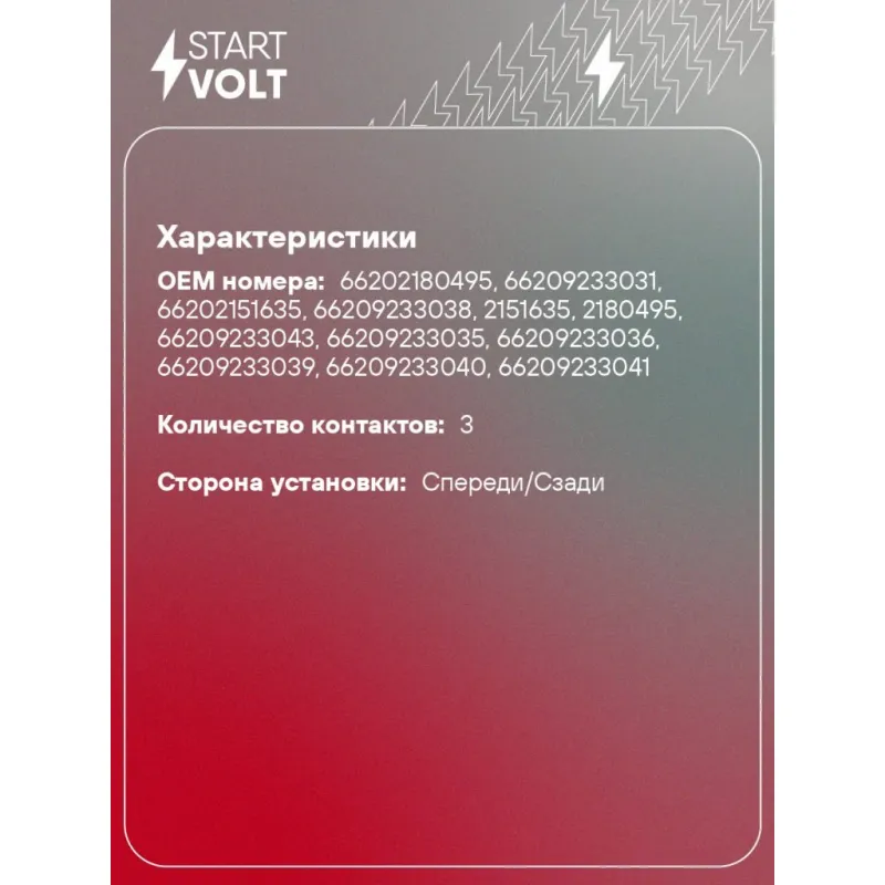 | STARTVOLT VSPK2626 1 шт. | 2 дня | 46.80 р. | |