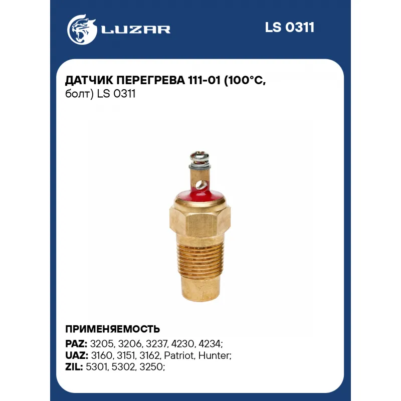 Датчик перегрева 111-01 (100°С, болт) Характеристики: Артикул: LS 0311 OEM номера: 111-3808800-01, TM11101 Количество на автомобиль: 1 Трансмиссия: MT Кондиционер: - Размер резьбы: 3/8 NPT Температура включения, °С: 100 Температура выключения, °С: 92 Подходит для авто: ПАЗ 3205, 3206, 3237, 4230, 4234, 3205, 3206, 3237, 4230, 4234 УАЗ 3160 (97-), 3151 (85-), 3162 (00-), Patriot (08-), Hunter (УАЗ-315195) (03-), 31631 ZIL 5301, 5302, 3250 КамаАЗ 5320, 5410, 5511, 6520, 6522, 4308, 4310, 4326, 5315, 53212, 54112, 55112, 55102, 55111, 4350, 5350, 6350, 6460, 65116, 65117, 65225 Ural 4320, 4320 BelAZ 7413, 7513, 7540, 7512, 7522 КрАЗ 250, 255, 260, 6510, 6510, 6437, 643701, 6443, 64431, 6444, 6503, 65053, 65055, 5133, 6135, 5233, 6322 ЛАЗ 695, 697, 699, 4202, 4207 Для проверки применяемости отправьте VIN автомобиля через вкладку "Есть вопросы о товаре?" Комплектация: Датчик перегрева - 1 шт Гарантия: от 1 года.