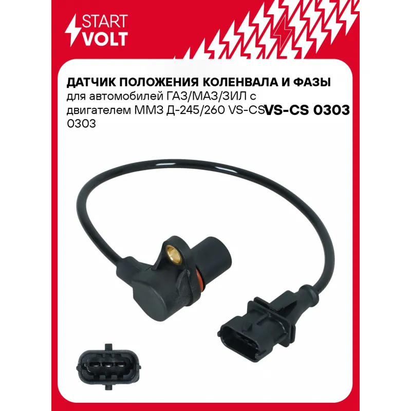 Датчик положения коленвала и фазы для автомобилей ГАЗ/МАЗ/ЗИЛ с двигателем ММЗ Д-245/260 Характеристики: Артикул: VS-CS 0303 OEM номера: 0281006009 Количество контактов: 3 Длина провода, мм: 310 Монтажная глубина, мм: 24 Количество на автомобиль: 1 Комплектация: Датчик положения коленвала - 1 шт Паспорт изделия/гарантийный талон - 1 шт Гарантия: от 1 года.