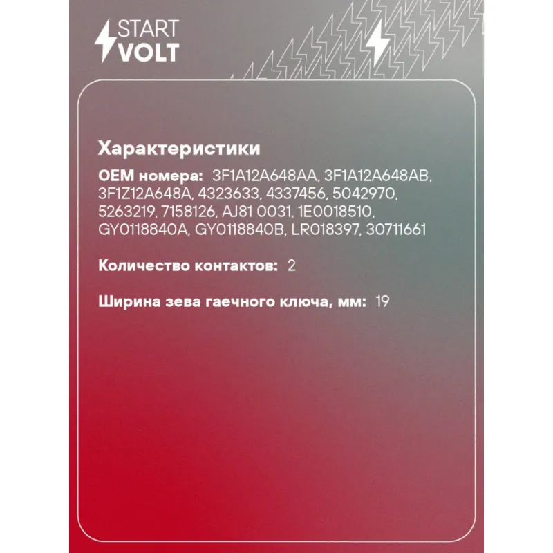 | Количество на автомобиль | 1 |
