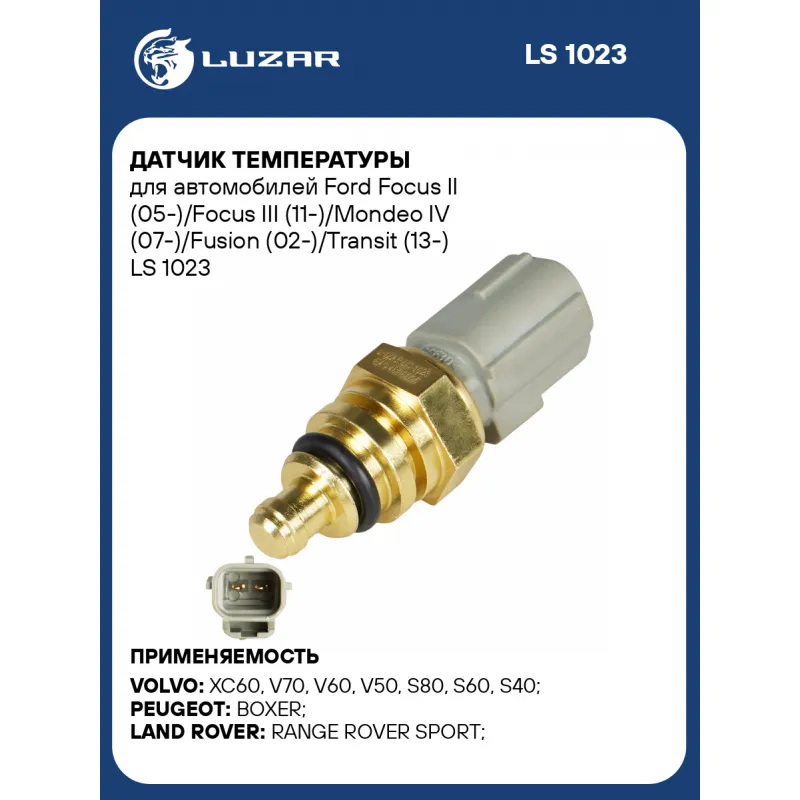 Датчик температуры для автомобилей Ford Focus II (05-)/Focus III (11-)/Mondeo IV (07-)/Fusion (02-)/Transit (13-) Характеристики: Артикул: LS 1023 OEM номера: 1484876, 7M5112A648AA, 11 09 340, 14 58 378, 1 540 574, 1 803 883, 4 529 853, 40 93 827, 7M51 12A648 BA, XS6Z 12A648 CA, IL2Z 12A648 AA, 1 702 985, XS6F12A648CB, 1802332, 1L2A 12A648 AA, 1L2Z 12A648 AA, 3L8A 12A648 BA, 3L8A-12A648-BB, 1 892 398, 3L8Z 12A648 BA, 7C1112A648AA, 7C1112A648AB, 7C11 12A648 AC, XS6F12A648CA, U20218840, 1F22-18-840, 1F60-18-840, AJ03-18-840, AJ03-18-840A, 31216653, 31272434, 9675342080 Трансмиссия: MT/AT Кондиционер: + Размер резьбы: - Сопутствующий товар: Термостаты: LT 1002, LT 2021 Количество на автомобиль: 1 Комплектация (кол-во деталей, описание): уплотнительное кольцо Применение: установлен в LT 1002, LT 2021 Сопротивление при температуре 20°С, Ом: 37430 Сопротивление при температуре 60°С, Ом: 7548 Сопротивление при температуре 120°С, Ом: 1191 Комплектация: Датчик температуры - 1 шт Уплотнительное кольцо - 1 шт Гарантия: от 1 года.