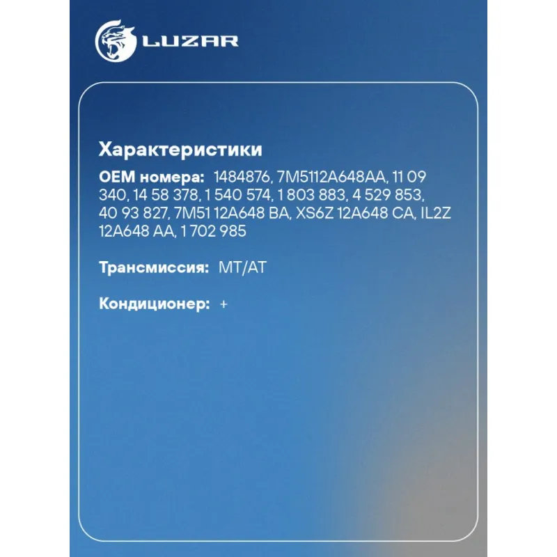 | Количество на автомобиль | 1 |