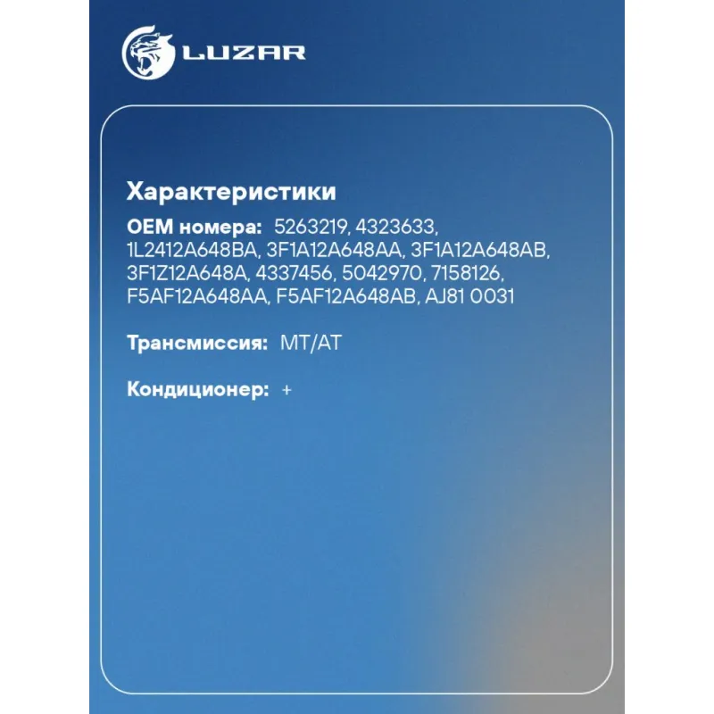 Датчик температуры для автомобилей Ford Focus II (05-)/Fusion (02-)/Fiesta (01-) Характеристики: Артикул: LS 1022 OEM номера: 5263219, 4323633, 1L2412A648BA, 3F1A12A648AA, 3F1A12A648AB, 3F1Z12A648A, 4337456, 5042970, 7158126, F5AF12A648AA, F5AF12A648AB, AJ81 0031, LRA1600AA, XR832403, XR858700, 1E0018510, C20118140Z01, GY0118840A, GY0118840B, GY0118840C, 30711661, 30711661A Трансмиссия: MT/AT Кондиционер: + Размер резьбы: NPT 3/8 Количество на автомобиль: 1 Сопротивление при температуре 60°С, Ом: 7548 Сопротивление при температуре 90°С, Ом: 2804 Сопротивление при температуре 20°С, Ом: 37340 Комплектация: Датчик температуры - 1 шт Гарантия: от 1 года.
