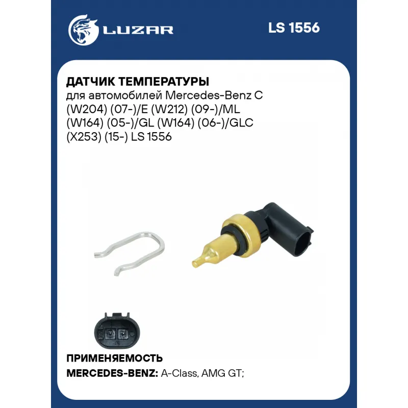 Датчик температуры для автомобилей Mercedes-Benz C (W204) (07-)/E (W212) (09-)/ML (W164) (05-)/GL (W164) (06-)/GLC (X253) (15-) Характеристики: Артикул: LS 1556 OEM номера: A0041539728, A0009050600, A0999053700, A0009056102, 0041539728, 0009050600, 0999053700, 0009056102 Размер резьбы: - Сопутствующий товар: Термостаты: LT 1556, LT 15651, LT 1550, LT 15274 Количество на автомобиль: 1 Сопротивление при температуре 120°С, Ом: 99,4 Комплектация (кол-во деталей, описание): уплотнительное кольцо, крепежная скоба Применение: установлен в LT 1556, LT 15651 Сопротивление при температуре 80°С, Ом: 318,3 Комплектация: Датчик температуры - 1 шт Уплотнительное кольцо - 1 шт Крепежная скоба - 1 шт Гарантия: от 1 года.