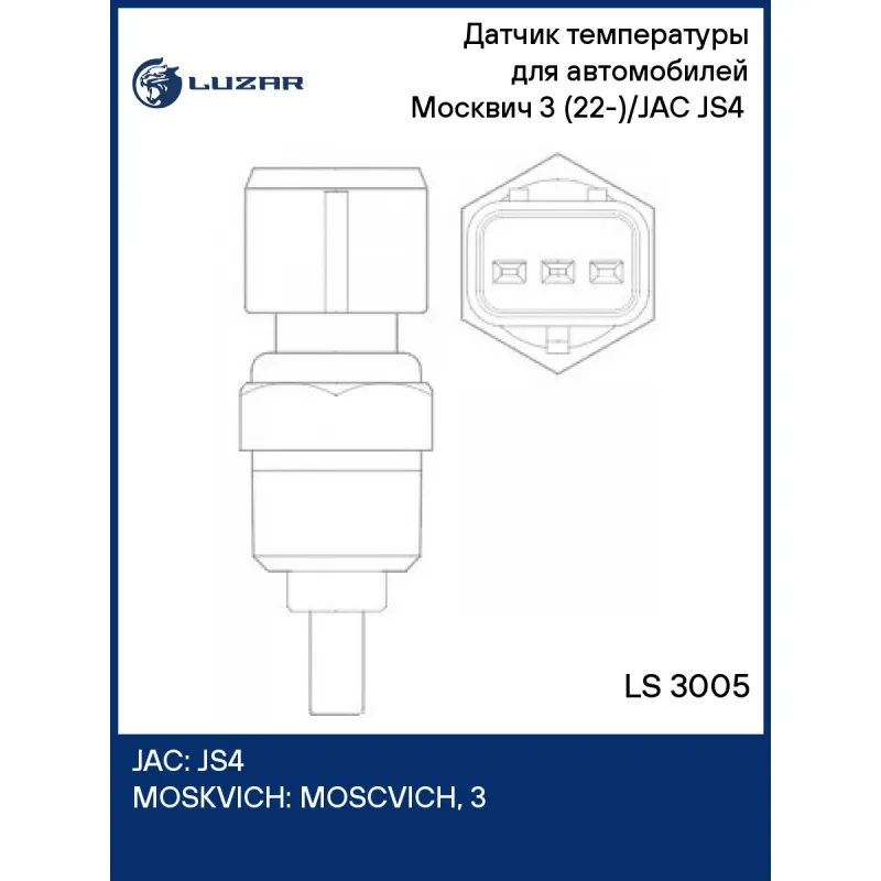 Датчик температуры для автомобилей Москвич 3 (22-)/JAC JS4 (20-) Характеристики: Артикул: LS 3005 OEM номера: 1026604GK030 Размер резьбы: R 3/8 Сопутствующий товар: Термостаты: LT 1115 Количество на автомобиль: 1 Сопротивление при температуре 80°С, Ом: 332/126 Сопротивление при температуре 100°С, Ом: 179/73,8 Сопротивление при температуре 40°С, Ом: 1455/462 Комплектация: Датчик температуры - 1 шт Гарантия: от 1 года.