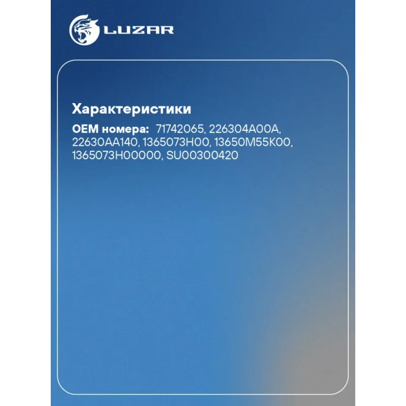 Датчик температуры для автомобилей Suzuki Grand Vitara (05-)/SX4 (06-)/Subaru Forester (08-)/Impreza (08-)/XV (12-) Характеристики: Артикул: LS 2401 OEM номера: 71742065, 226304A00A, 22630AA140, 1365073H00, 13650M55K00, 1365073H00000, SU00300420 Размер резьбы: M12x1,5 Сопутствующий товар: Термостаты: LT 1115 Количество на автомобиль: 1 Сопротивление при температуре 80°С, Ом: 328 Сопротивление при температуре 100°С, Ом: 183,6 Комплектация (кол-во деталей, описание): уплотнительное кольцо Сопротивление при температуре 40°С, Ом: 1150 Комплектация: Датчик температуры - 1 шт Уплотнительное кольцо - 1 шт Гарантия: от 1 года.