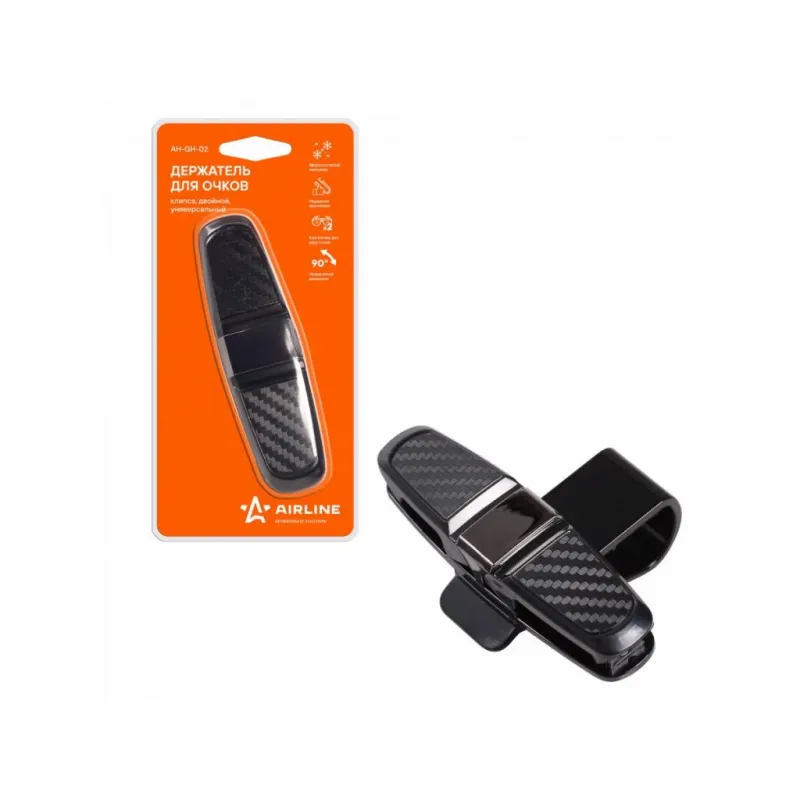 Держатель для очков двойной, универсальный, крепление-клипса Описание: Держатель для очков, который является незаменимым атрибутом в салоне авто для водителей пользующихся во время вождения очками. При передвижении очки подвержены повреждениям: их стекла бьются, образуются мелкие царапины, оправа ломается или очки просто невозможно найти, когда они так нужны. Избежать этого поможет универсальный держатель для очков AIRLINE, с его помощью можно закрепить очки на солнцезащитный козырек или панель автомобиля. Характеристики: Артикул: AH-GH-02 OEM номера: 66770-ADE00 Место крепления: козырек солнцезащитный Длина, мм: 90 Ширина, мм: 25 Толщина, мм: 45 Вид крепления: клипса Вид корпуса: не складной Комплектация: Блистер - 1 шт Держатель - 1 шт Гарантия: от 1 года.