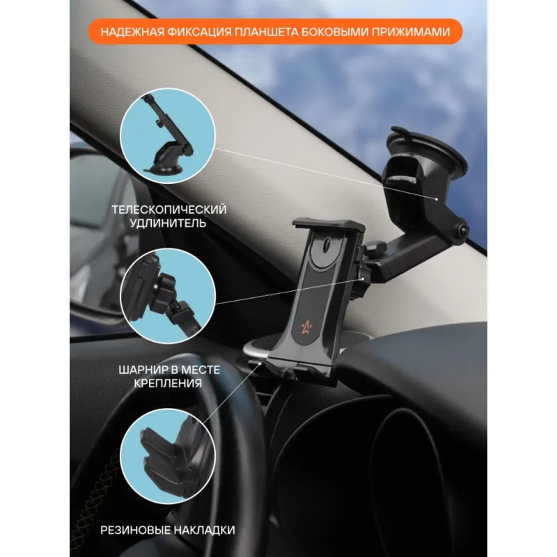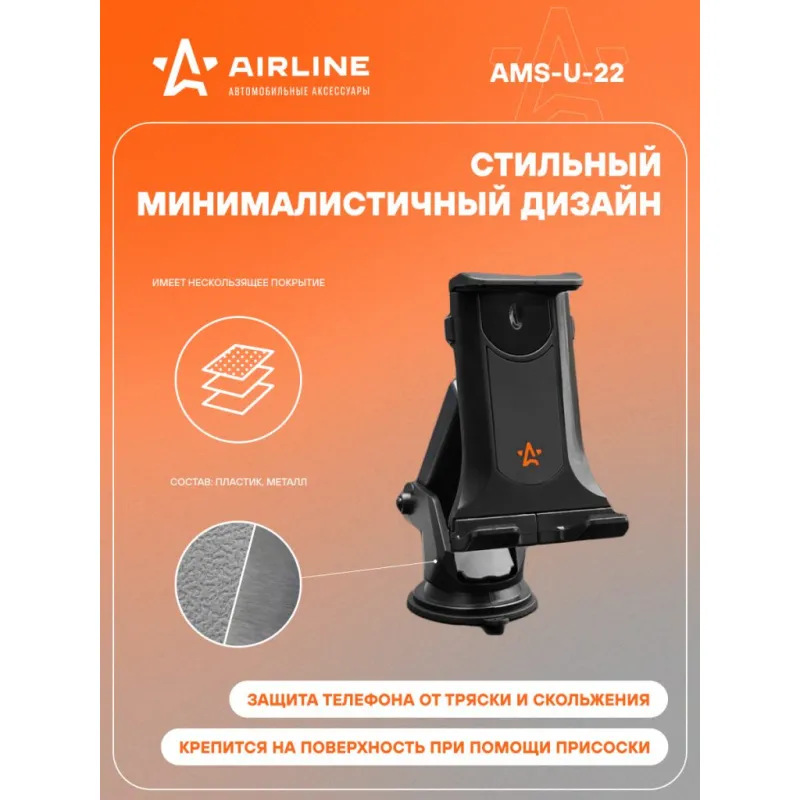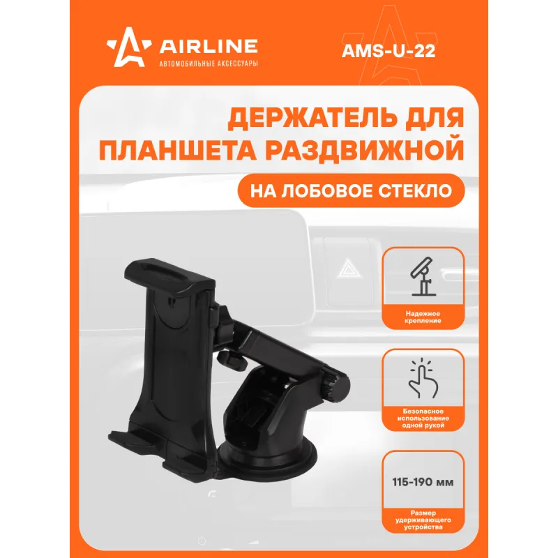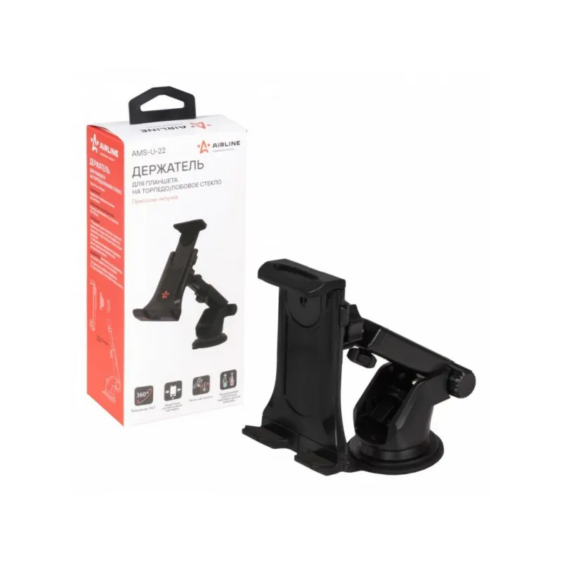 Держатель для планшета автомобильный на лобовое стекло/торпедо Описание: Универсальный держатель для телефона AMS-U-22 бренда AIRLINE поможет вам всегда держать гаджет под рукой и безопасно использовать его в дороге. Также можно использовать для навигатора. Универсальный дизайн и классический черный цвет позволят использовать интересный аксессуар в любом автомобиле как легковом, так и грузовом. Гарантия 6 месяцев. Держатель обладает широким диапазоном настроек. Удерживать планшет помогают выдвижные лапы в нижней части держателя. Держатель обладает телескопическим удлинителем и шарниром в месте крепления устройства. Глянцевая поверхность сувенира выглядит эстетично, так что аксессуар станет украшением интерьера любого салона. Держатель это популярный мужской или женский подарочный набор для автомобилиста. Прекрасный презент любому водителю женщине или мужчине. Сделайте сюрприз парню, девушке, маме, папе, брату, сестре или другому близкому человеку на день рождения, новый год, 23 февраля и другой праздник. Товар официального производителя AIRLINE. Характеристики: Артикул: AMS-U-22 Тип держателя: Раздвижной Особенности крепления: Присоска липучка для любой поверхности Размер удерживаемого устройства (min), мм: 115 Размер удерживаемого устройства (max), мм: 190 Комплектация: Держатель - 1 шт Гарантия: от 1 года.