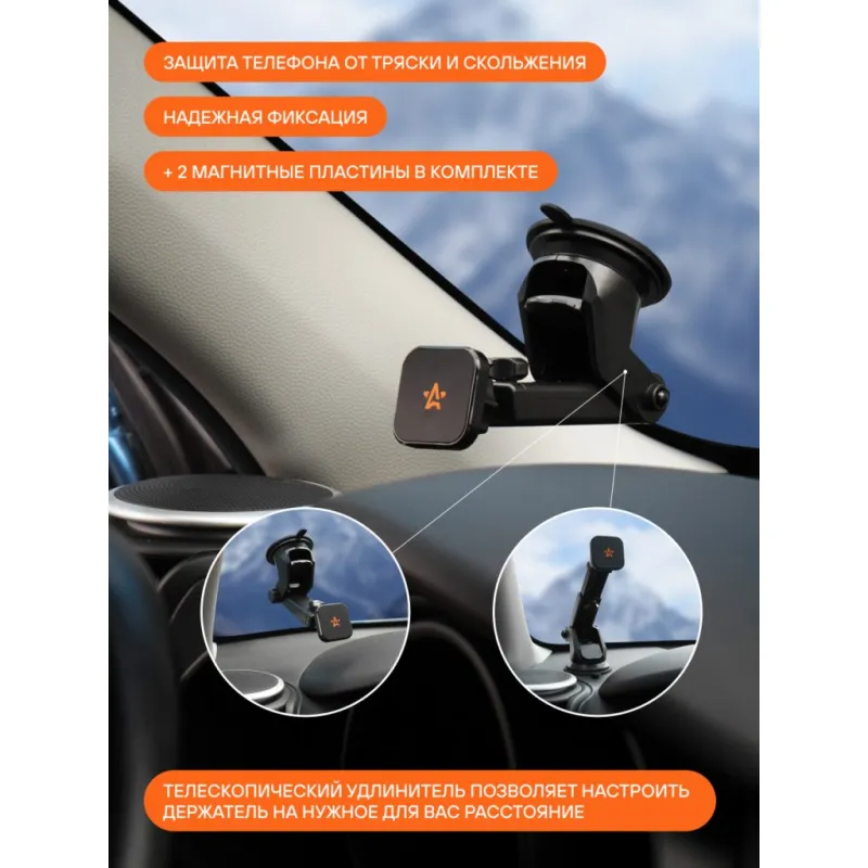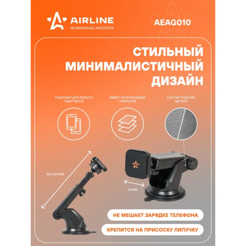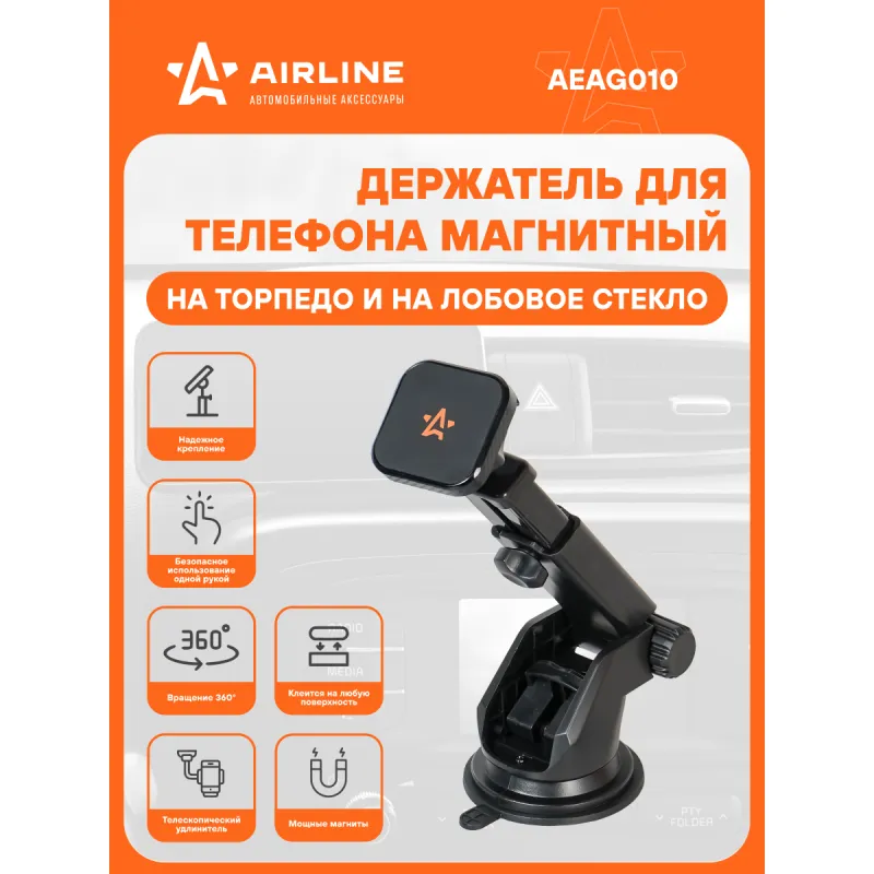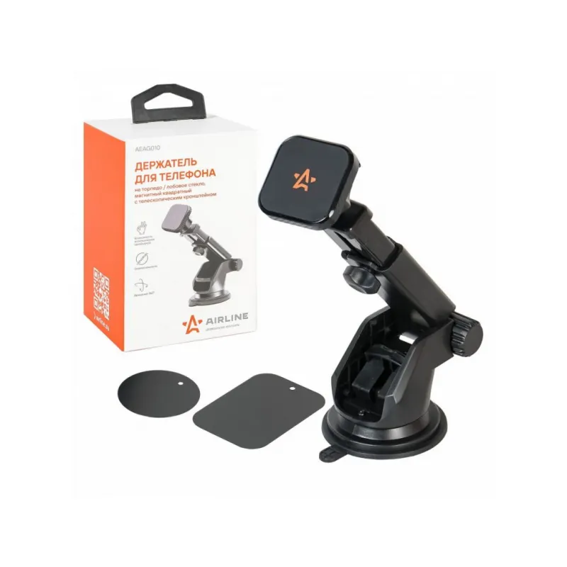 Держатель для телефона автомобильный на торпедо/лоб. стекло магнитный квадратный с телескоп. кроншт. Описание: Универсальный держатель для телефона на торпедо/лобовое стекло магнитный квадратный с телескопическим кронштейном AEAG010 бренда AIRLINE поможет вам всегда держать гаджет под рукой и безопасно использовать его в дороге. Универсальный дизайн и классический черный цвет позволят использовать интересный аксессуар в любом автомобиле как легковом, так и грузовом. Гарантия 6 месяцев. Держатель для телефона на торпедо/лобовое стекло Airline магнитный, квадратный, с телескопическим кронштейном AEAG010 имеет телескопический удлинитель, а также множество регулировок. Держатель обладает мощным магнитом и присоской-липучкой, а также резиновой поверхностью для увеличения силы трения между магнитом и смартфоном. Его можно закрепить как на лобовое стекло, так и на приборную панель. Длина штанги: 50-100 мм. Безразмерный. Держатель это популярный мужской или женский подарочный набор для автомобилиста. Сделайте сюрприз парню, девушке, маме, папе, брату, сестре или другому близкому человеку на день рождения, новый год, 23 февраля и другой праздник. Максимум регулировок; Возможность использовать одной рукой; Универсальный; Долгий срок службы. Товар официального производителя AIRLINE. Характеристики: Артикул: AEAG010 Тип держателя: Магнитный Особенности крепления: Присоска липучка для любой поверхности Длина штанги (max), см: 10 Длина штанги (min), см: 5 Комплектация: Держатель - 1 шт Пластина металлическая - 2 шт Коробка - 1 шт Гарантия: от 1 года.