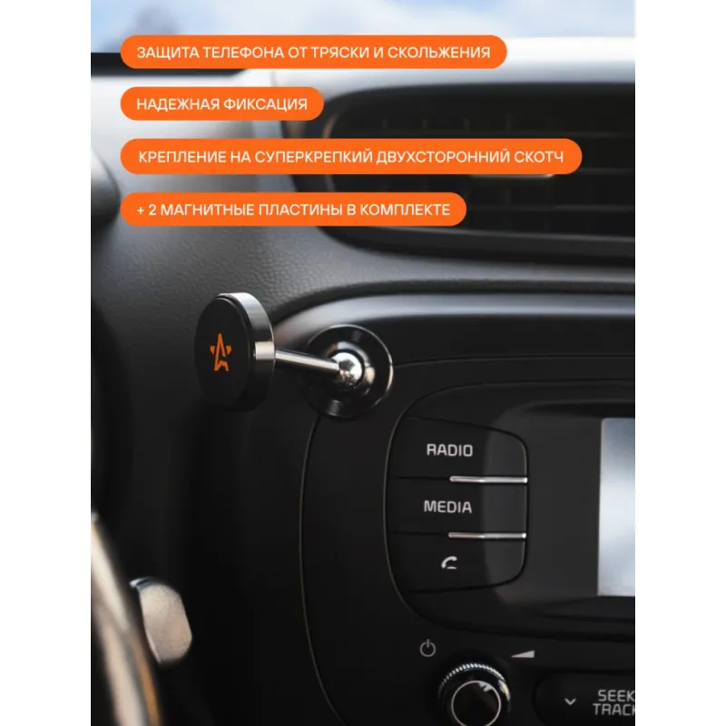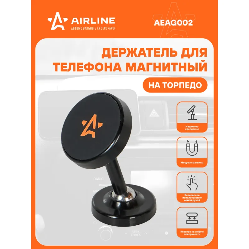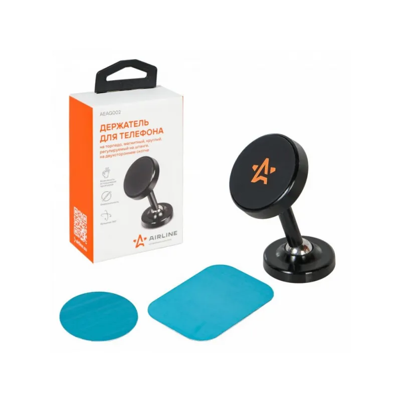 Держатель для телефона автомобильный на торпедо магнитный круглый регулируем. на штанге на двухст.скотче Описание: Универсальный держатель для телефона на торпедо магнитный круглый регулируем. на штанге на двухстороннем скотче AEAG002 бренда AIRLINE поможет вам всегда держать гаджет под рукой и безопасно использовать его в дороге. Универсальный дизайн и классический черный цвет позволят использовать интересный аксессуар в любом автомобиле как легковом, так и грузовом. Гарантия 6 месяцев. Держатель для телефона на торпедо Airline магнитный, круглый, регулируемый на штанге, на двухстороннем скотче AEAG002 крепится на поверхность торпедо на двухсторонний скотч. В комплекте идет металлическая пластина, которую необходимо прикрепить к задней крышке телефона. Держатель имеет возможность регулировки положения в широком диапазоне. Мощные магниты и резиновая накладка надёжно фиксируют телефон. Безразмерный. Держатель это популярный мужской или женский подарочный набор для автомобилиста. Сделайте сюрприз парню, девушке, маме, папе, брату, сестре или другому близкому человеку на день рождения, новый год, 23 февраля и другой праздник. Максимум регулировок; Возможность использовать одной рукой; Универсальный; Долгий срок службы. Товар официального производителя AIRLINE. Характеристики: Артикул: AEAG002 Тип держателя: Магнитный Особенности крепления: Клеится на любую поверхность Комплектация: Держатель - 1 шт Пластина металлическая - 2 шт Коробка - 1 шт Гарантия: от 1 года.