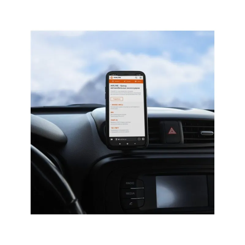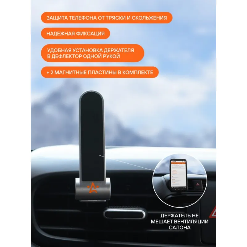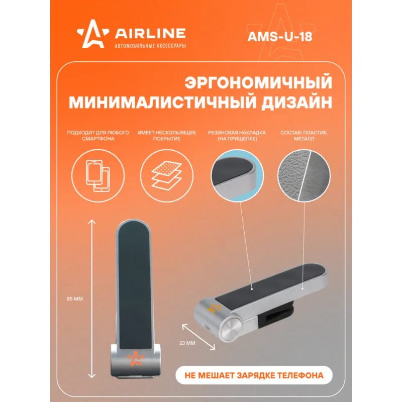 Держатель для телефона автомобильный в дефлектор магнитный анодированный Описание: Универсальный держатель для телефона AMS-U-18 бренда AIRLINE поможет вам всегда держать гаджет под рукой и безопасно использовать его в дороге. Универсальный дизайн и классический черно-белый цвет позволят использовать интересный аксессуар в любом автомобиле как легковом, так и грузовом. Гарантия 6 месяцев. Держатель имеет минималистичный и строгий дизайн, который хорошо впишется во множество моделей автомобилей подчеркивая алюминиевые элементы отделки салона (или пластика сделанного под алюминий). Мощный магнит надёжно держит смартфон. Держатель хорошо держится в дефлекторе автомобиля и не мешает обзору. Держатель имеет регулировку по наклону. Глянцевая поверхность сувенира выглядит эстетично, так что аксессуар станет украшением интерьера любого салона. Держатель это популярный мужской или женский подарочный набор для автомобилиста. Прекрасный презент любому водителю женщине или мужчине. Сделайте сюрприз парню, девушке, маме, папе, брату, сестре или другому близкому человеку на день рождения, новый год, 23 февраля и другой праздник. Товар официального производителя AIRLINE. Характеристики: Артикул: AMS-U-18 Тип держателя: Магнитный Особенности крепления: Крепится в дефлектор Комплектация: Держатель в коробке - 1 шт Металлическая пластина - 2 шт Гарантия: от 1 года.