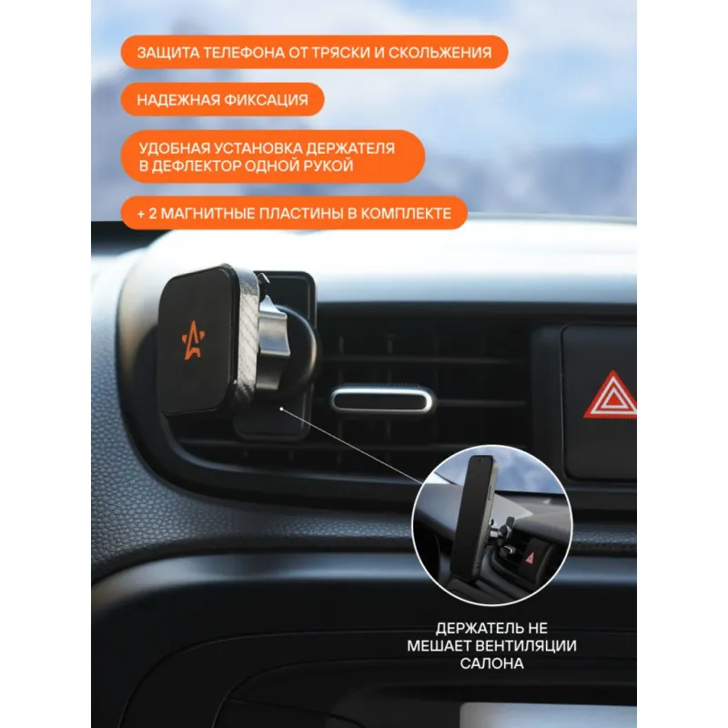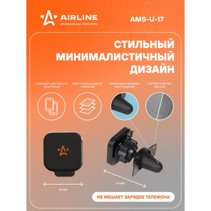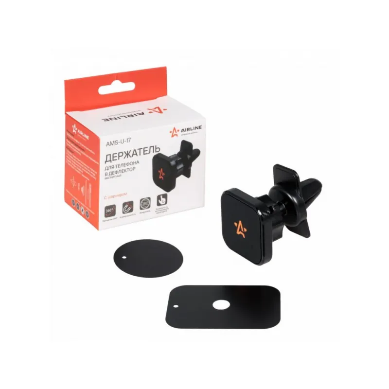 Держатель для телефона автомобильный в дефлектор магнитный с шарниром Описание: Универсальный держатель для телефона AMS-U-17 бренда AIRLINE поможет вам всегда держать гаджет под рукой и безопасно использовать его в дороге. Универсальный дизайн и классический черный цвет позволят использовать интересный аксессуар в любом автомобиле как легковом, так и грузовом. Гарантия 6 месяцев. Держатель имеет компактный дизайн и не мешает обзору водителя, имеет мощный магнит и резиновую поверхность повышающую силу трения соприкосновения со смартфоном. Держатель обладает дополнительными выступами в месте крепления к дефлектору, что помогает избежать нежелательных смещений и люфтов и делает его более универсальным. Держатель имеет множество регулировок по наклону, благодаря использованию шарнира в конструкции. Глянцевая поверхность сувенира выглядит эстетично, так что аксессуар станет украшением интерьера любого салона. Держатель это популярный мужской или женский подарочный набор для автомобилиста. Прекрасный презент любому водителю женщине или мужчине. Сделайте сюрприз парню, девушке, маме, папе, брату, сестре или другому близкому человеку на день рождения, новый год, 23 февраля и другой праздник. Товар официального производителя AIRLINE. Характеристики: Артикул: AMS-U-17 Тип держателя: Магнитный Особенности крепления: Крепится в дефлектор Комплектация: Держатель - 1 шт Металлическая пластина - 2 шт Гарантия: от 1 года.