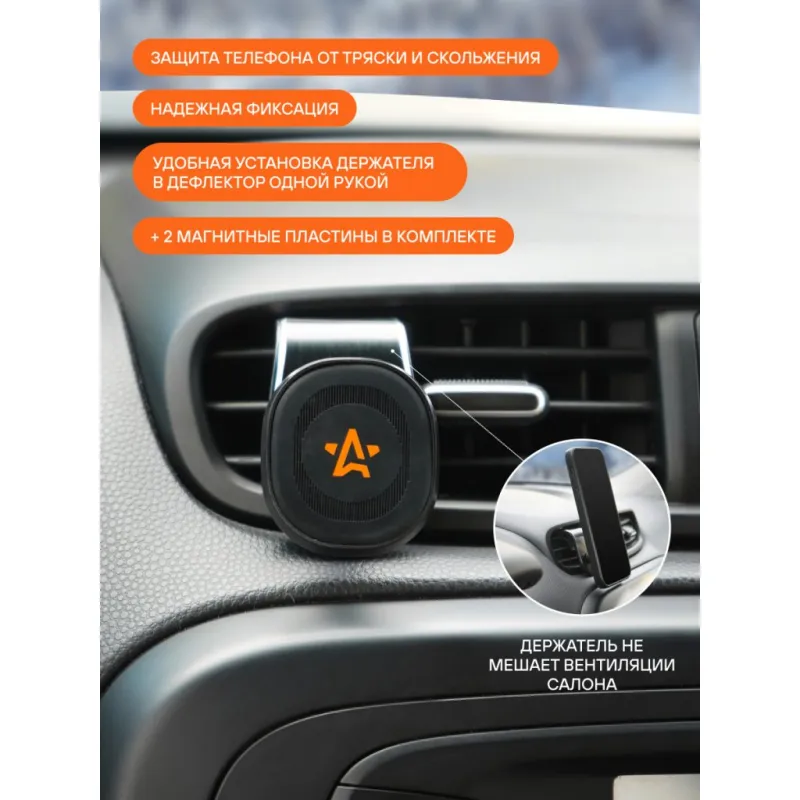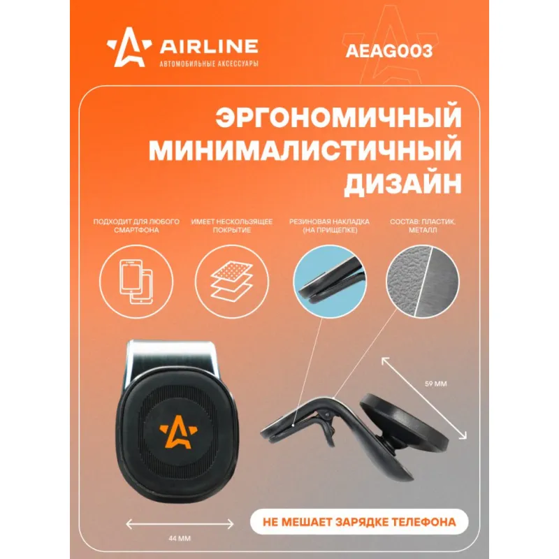 Держатель для телефона автомобильный в дефлектор прищепка магнитный регулируемый Описание: Универсальный держатель для телефона в дефлектор прищепка магнитный регулируемый AEAG003 бренда AIRLINE поможет вам всегда держать гаджет под рукой и безопасно использовать его в дороге. Универсальный дизайн и классический черный цвет позволят использовать интересный аксессуар в любом автомобиле как легковом, так и грузовом. Гарантия 6 месяцев. Держатель крепится на решётку дефлектора на прищепку. В комплекте идёт металлическая пластина которую необходимо прикрепить к задней крышке телефона. Держатель имеет возможность регулировки положения в широком диапазоне. Мощные магниты и резиновая накладка надёжно фиксируют телефон. Безразмерный. Держатель это популярный мужской или женский подарочный набор для автомобилиста. Сделайте сюрприз парню, девушке, маме, папе, брату, сестре или другому близкому человеку на день рождения, новый год, 23 февраля и другой праздник. Максимум регулировок; Возможность использовать одной рукой; Универсальный; Долгий срок службы. Товар официального производителя AIRLINE. Характеристики: Артикул: AEAG003 Тип держателя: Магнитный Особенности крепления: Крепится в дефлектор Комплектация: Держатель - 1 шт Пластина металлическая - 2 шт Коробка - 1 шт Гарантия: от 1 года.