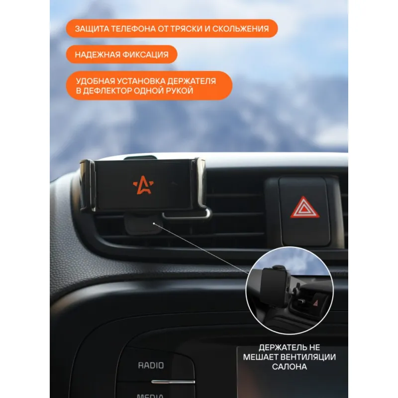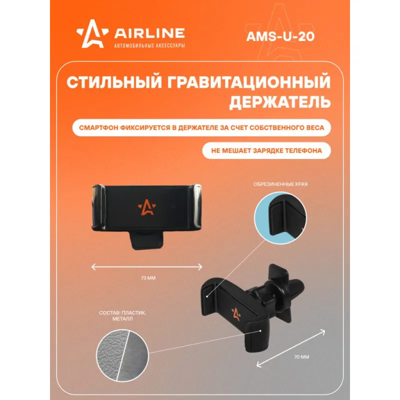 Держатель для телефона автомобильный в дефлектор раздвижной с шарниром Описание: Универсальный держатель для телефона в дефлектор раздвижной с шарниром AMS-U-20 бренда AIRLINE поможет вам всегда держать гаджет под рукой и безопасно использовать его в дороге. Универсальный дизайн и классический черный цвет позволят использовать интересный аксессуар в любом автомобиле как легковом, так и грузовом. Гарантия 6 месяцев. Данный держатель крепится присоской липучкой для любой поверхности, как на лобовое стекло, так и на торпедо автомобиля. Держатель крепится на решётку дефлектора. Захваты имеют обрезиненные края для надёжного удержания телефона. Благодаря использованию шарнира в конструкции, держатель имеет возможность регулировки по повороту и наклону. Его можно закрепить как на лобовое стекло, так и на приборную панель. Глянцевая поверхность сувенира выглядит эстетично, так что аксессуар станет украшением интерьера любого салона. Держатель это популярный мужской или женский подарочный набор для автомобилиста. Прекрасный презент любому водителю женщине или мужчине. Сделайте сюрприз парню, девушке, маме, папе, брату, сестре или другому близкому человеку на день рождения, новый год, 23 февраля и другой праздник. Товар официального производителя AIRLINE. Характеристики: Артикул: AMS-U-20 Тип держателя: Раздвижной Особенности крепления: Крепится в дефлектор Размер удерживаемого устройства (min), мм: 58 Размер удерживаемого устройства (max), мм: 88 Комплектация: Держатель - 1 шт Гарантия: от 1 года.