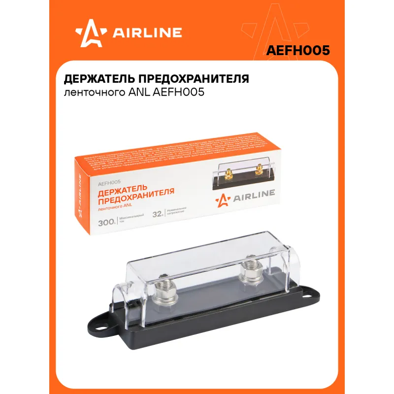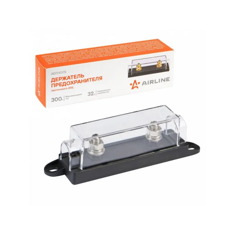 Держатель предохранителя ленточного ANL Описание: Держатель предохранителя AIRLINE - это необходимый аксессуар для обеспечения безопасности и надежной работы электрической системы автомобиля. Держатель используется для установки предохранителя типа ANL в электрическую цепь, защищая его от внешних физических воздействий. Изготовленный из высококачественного пластика, держатель предохранителя AIRLINE обладает высокой устойчивостью к износу и долговечностью. Компактный и легкий, этот держатель отлично подходит для подключения систем автозвука. Используйте держатель для установки предохранителя ANL от AIRLINE для достижения максимального уровня звука! Характеристики: Артикул: AEFH005 Номинальное напряжение, В: 32 Максимальный ток, А: 300 Комплектация: Держатель - 1 шт Упаковка - 1 шт Гарантия: от 1 года.