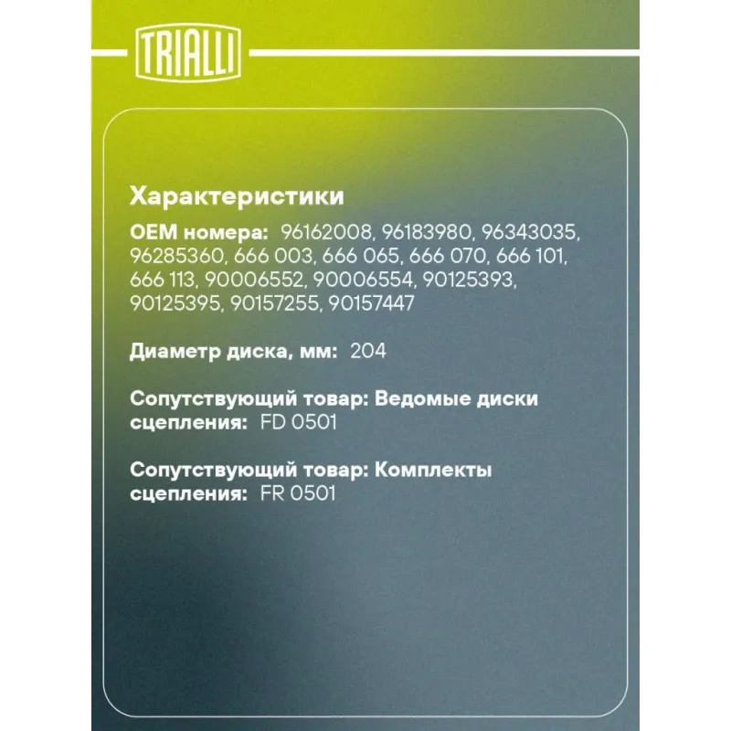 | Сопутствующий товар: Ведомые диски сцепления | FD 0501 |