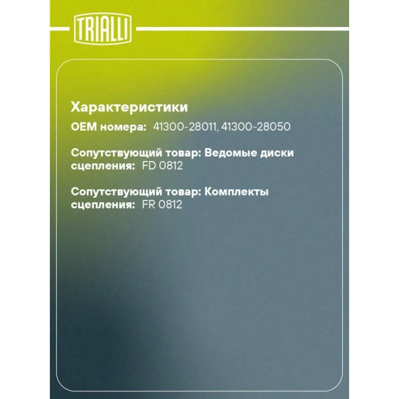 | Сопутствующий товар: Ведомые диски сцепления | FD 0812 |