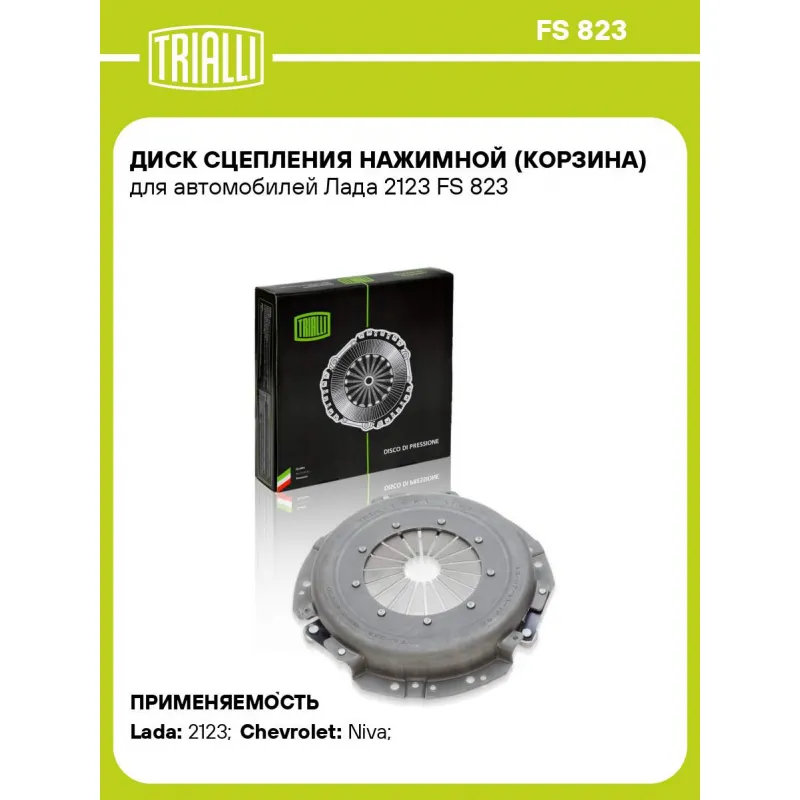 Диск сцепления нажимной (корзина) для автомобилей Лада 2123 Характеристики: Артикул: FS 823 OEM номера: 21233-1601085, 21233160108500, 21230160108500, 2123-1601085 Диаметр, мм: 216 Гарантийный срок: 2 года/60 000 км Количество на автомобиль: 1 Сопутствующие товары:: FD 323, FR 723 Сопутствующий товар: Комплекты сцепления: FR 723 Сопутствующий товар: Ведомые диски сцепления: FD 323 Сопутствующий товар: Цилиндры сцепления: CF 923 Товарная линейка: BLACK Подходит для авто: ВАЗ 2123, 2123 Chevrolet Niva (02-) Для проверки применяемости отправьте VIN автомобиля через вкладку "Есть вопросы о товаре?" Комплектация: Диск сцепления нажимной - 1 шт Гарантия: от 1 года.