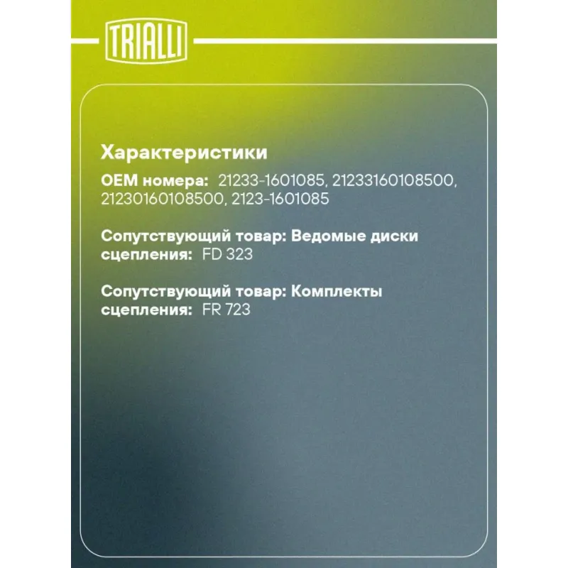 | Сопутствующий товар: Комплекты сцепления | FR 723 |