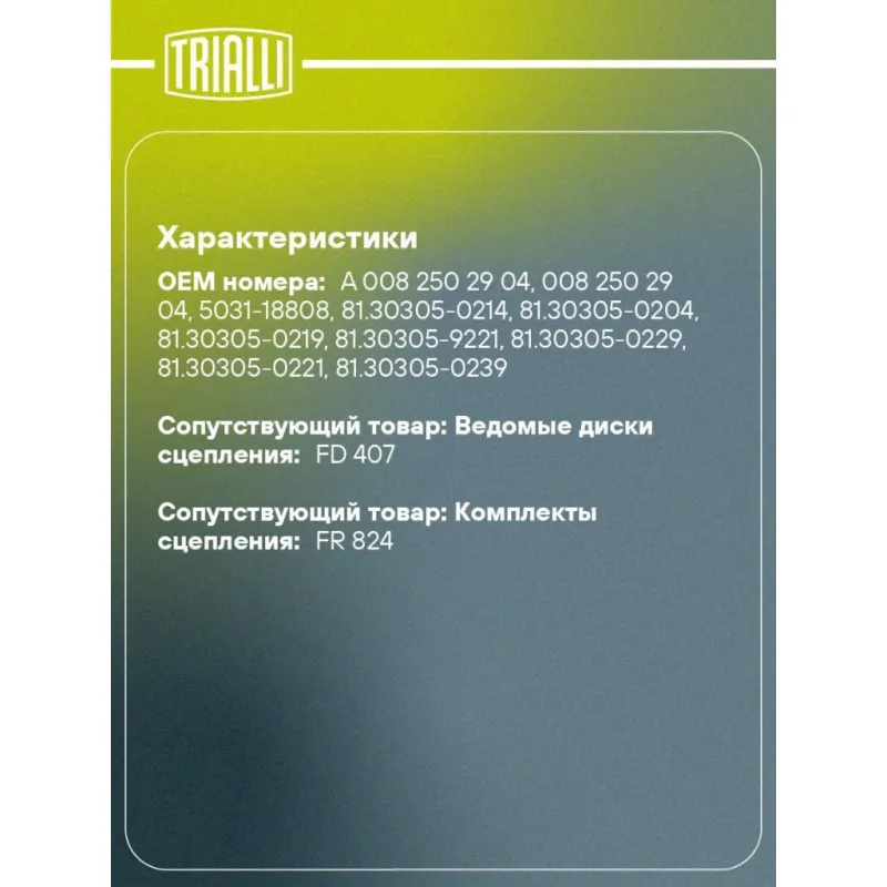 | Сопутствующий товар: Ведомые диски сцепления | FD 407 |