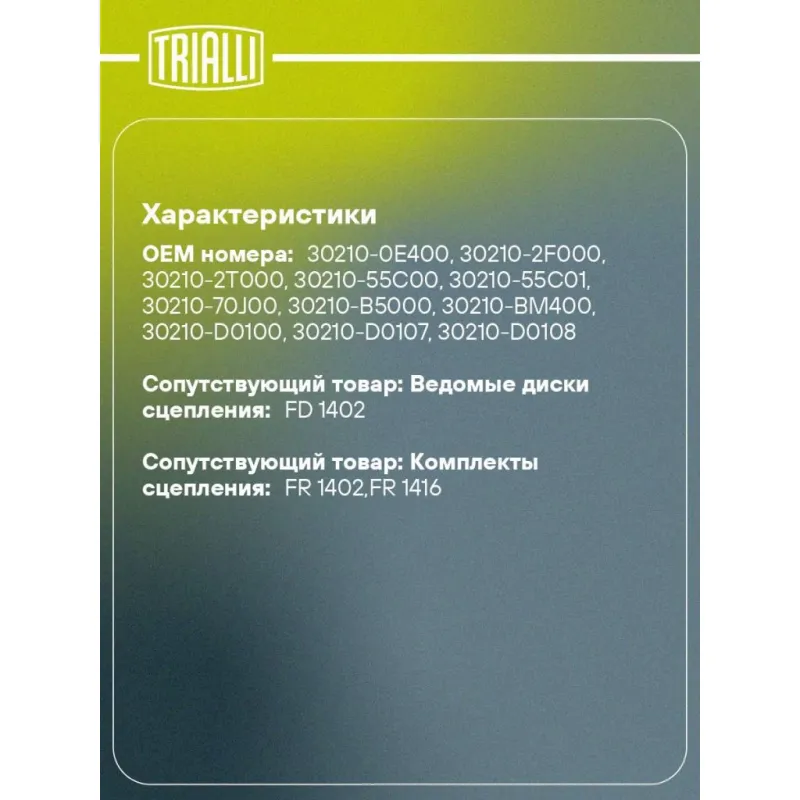 | Сопутствующий товар: Ведомые диски сцепления | FD 1402 |