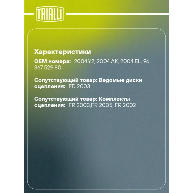 | Сопутствующий товар: Ведомые диски сцепления | FD 2003 |