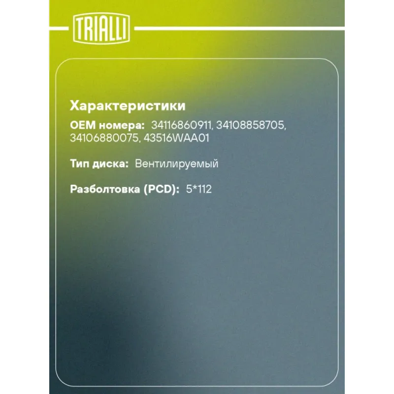 | Разболтовка (PCD) | 5*112 |