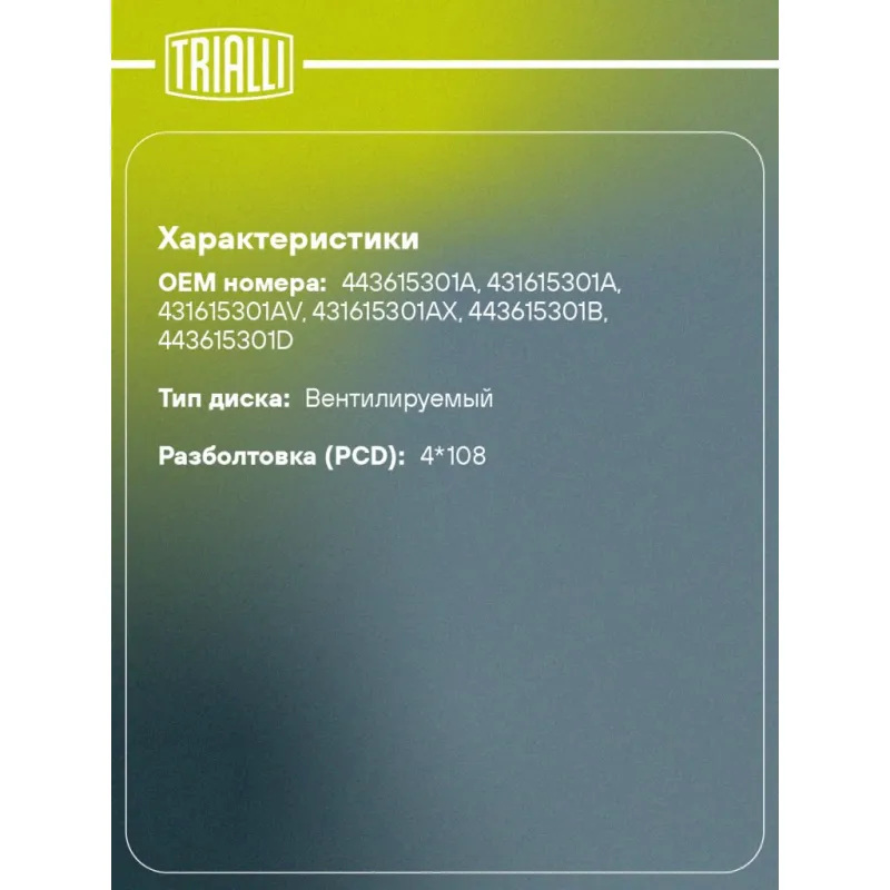 | Разболтовка (PCD) | 4*108 |