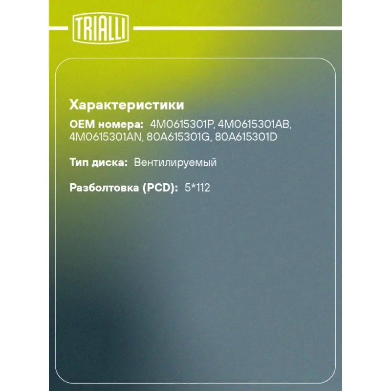 | TRIALLI DF185112 1 шт. | 2 дня | 275.50 р. | |