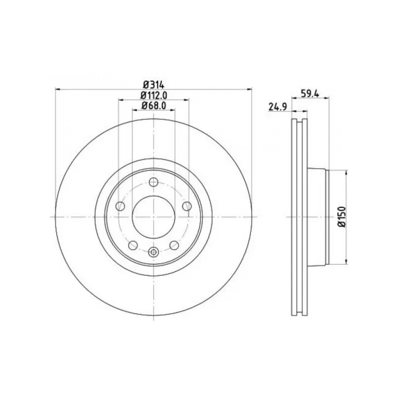 Диски тормозные для автомобилей Audi A6 (04-) TDI передние d=314 окрашенные Характеристики: Артикул: DF 084516 OEM номера: 4F0615301D, 4FD615301 Гарантийный срок: 2 года / 60 000 км Количество на автомобиль: 2 Сторона установки: Передняя ось Тип диска: Вентилируемый Диаметр внешний: 314 Диаметр центрирования: 68 Высота: 59.4 Толщина диска: 25 Мин. толщина диска: 23 Количество креп. отверстий: 5 Диаметр располож. креп. отверстий: 112 Разболтовка (PCD): 5*112 Товарная линейка: BLACK Количество в коробке, шт.: 1 Финишное покрытие: Geomet (матовый серебристый цвет) Комплектация: Диск тормозной - 1 шт Гарантия: от 1 года.