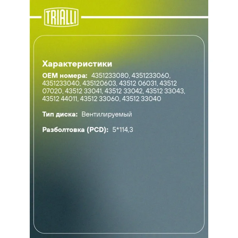 | Разболтовка (PCD) | 5*114,3 |