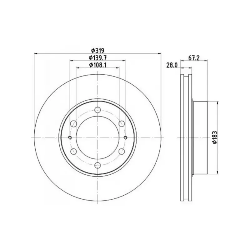 Диски тормозные для автомобилей Toyota Fortuner (04-) / Hilux (97-) передние d=319 окрашенные Характеристики: Артикул: DF 270066 OEM номера: 4351235320, 435120K100, 435120K101, 4351235321, 4351235322, 4351204052, 4351204051, 43512K230, 4351204050, 435120K090, 435120K140, 435120K150 Гарантийный срок: 2 года / 60 000 км Количество на автомобиль: 2 Сторона установки: Передняя ось Тип диска: Вентилируемый Диаметр внешний: 319 Диаметр центрирования: 108 Высота: 67.2 Толщина диска: 28 Мин. толщина диска: 26 Количество креп. отверстий: 6 Диаметр располож. креп. отверстий: 139.7 Разболтовка (PCD): 6*139.7 Сопутствующий товар: Колодки тормозные дисковые: PF 1935 Товарная линейка: BLACK Количество в коробке, шт.: 1 Финишное покрытие: Geomet (матовый серебристый цвет) Комплектация: Диск тормозной - 1 шт Гарантия: от 1 года.