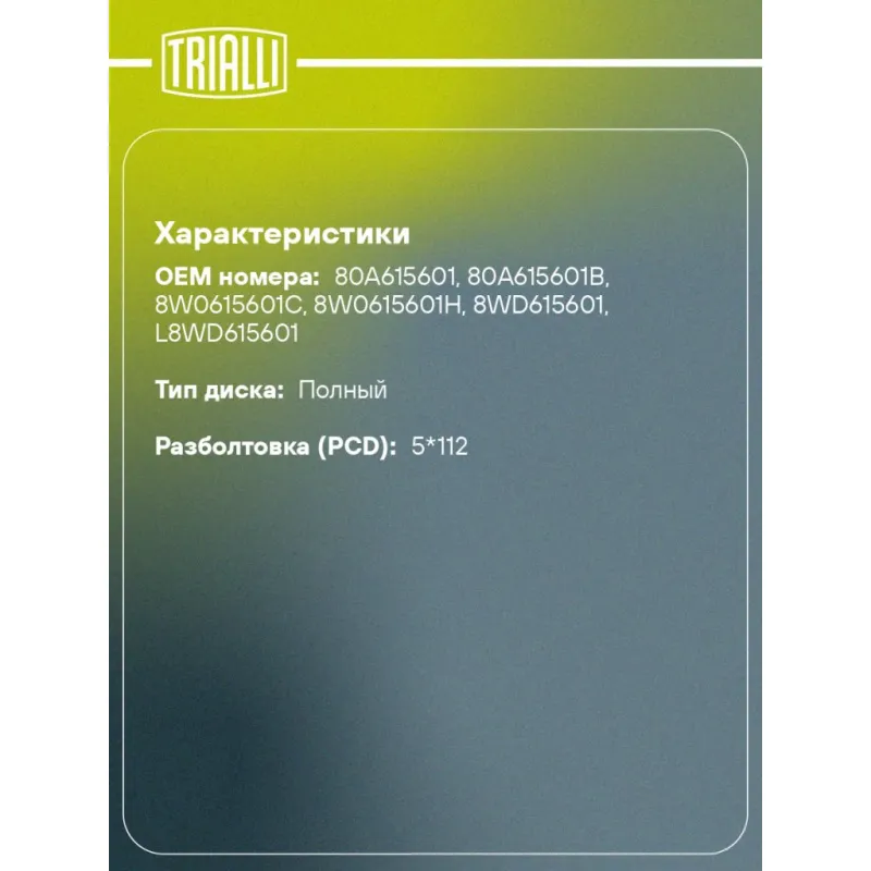 | Разболтовка (PCD) | 5*112 |